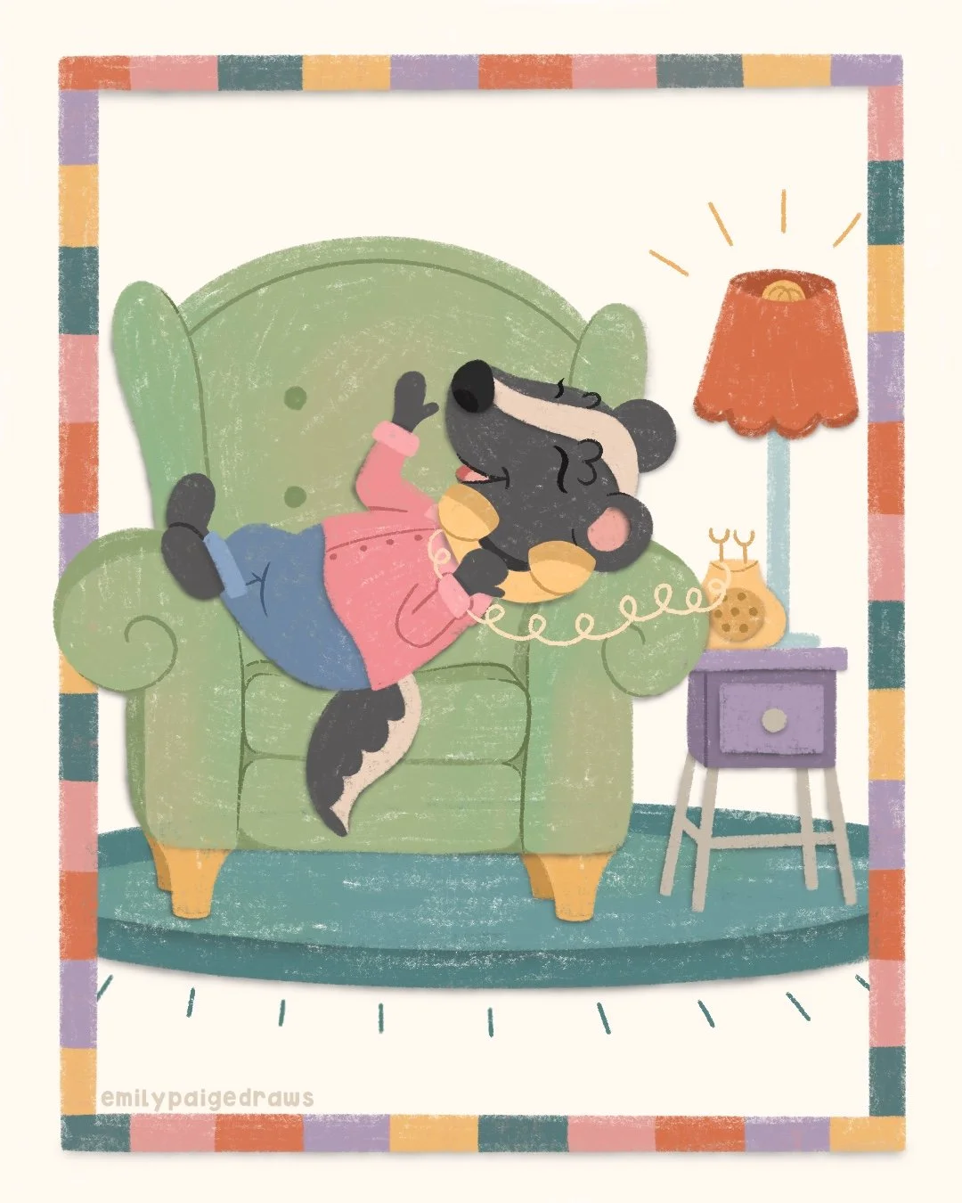 Various word prompts inspired these pieces, which feature a theme of woodland critters getting into all kinds of shenanigans!